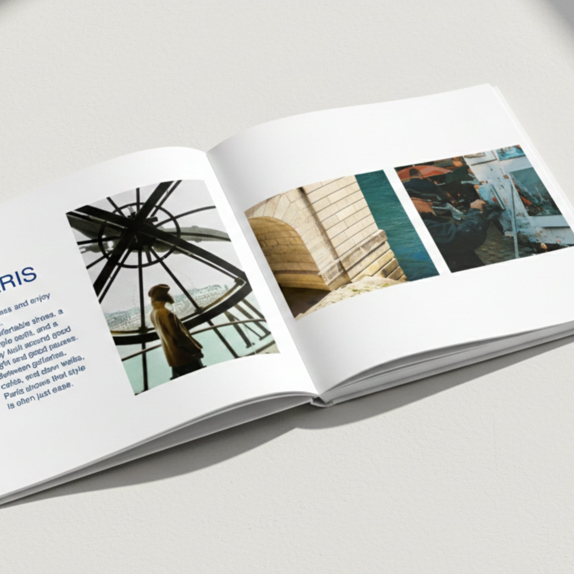Lumière Signature es un libro de fotos de tapa dura pensado como un archivo de viaje, creado para preservar tus momentos más significativos con un acabado sereno, similar a una galería.